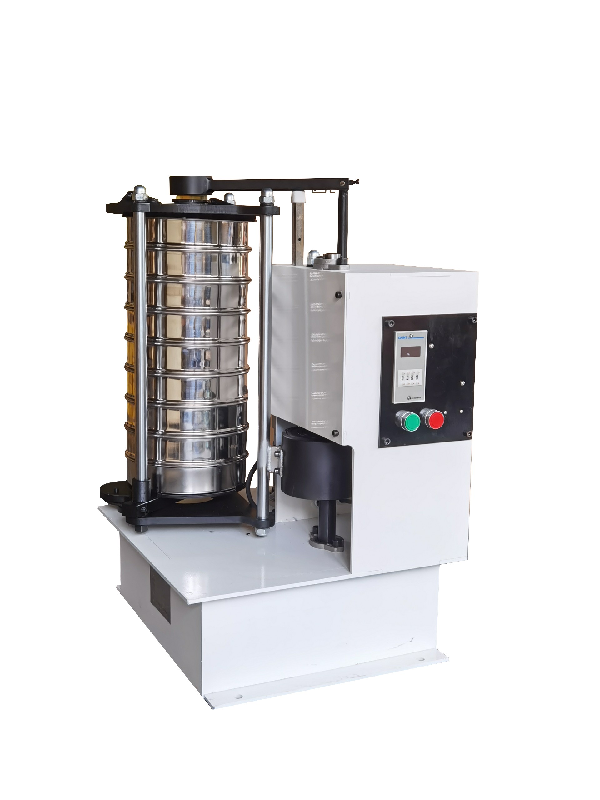 3)篩機最高可以放置八層試驗篩(含底篩),可以將一種顆粒料同時精密分出2~7個粒子段;
